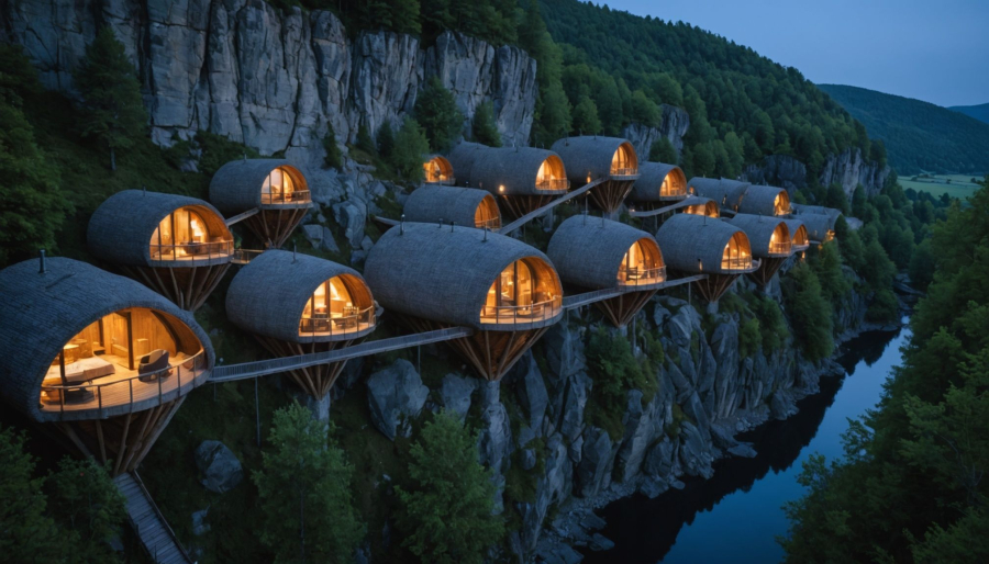 | Dômes géodésiques et cabanes dans les arbres | Expérience d'observation des étoiles ou de séjour en hauteur, avec services haut de gamme (piscine chauffée, animations). Offre d'hébergements flottants également disponible. Favorise écotourisme avec matériaux biosourcés. |